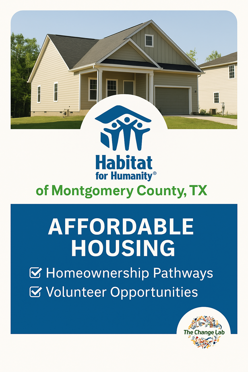 Habitat MCTX embodies the principles of mutual aid, structural equity, and shared power by mobilizing volunteers, donors, and partners to co-create solutions with the community. Their work aligns with The Change Lab’s focus on basic needs, belonging, and system-informed solutions to housing insecurity.